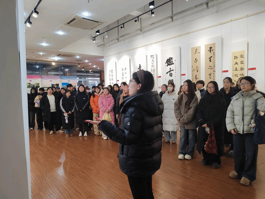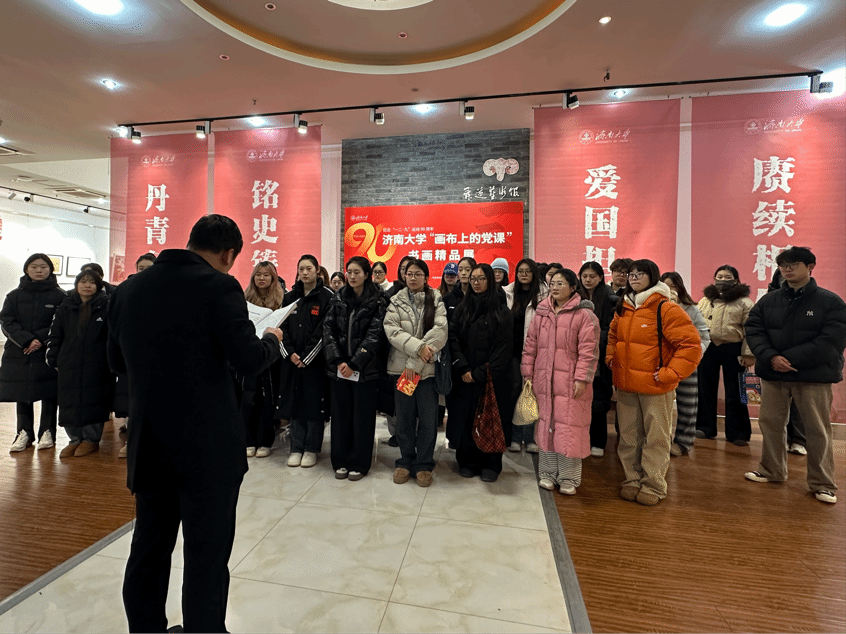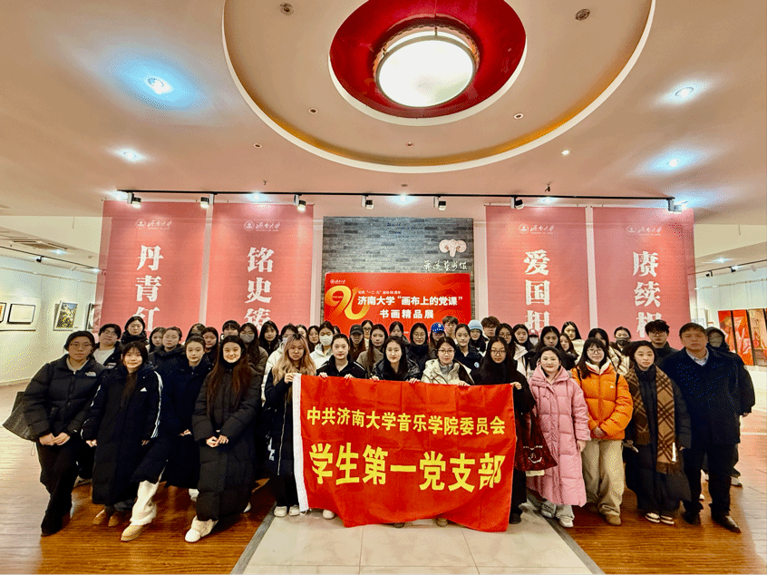 为传承红色基因,引导青年从历史中汲取奋进力量,12月23日下午,中共济南大学音乐学院委员会学生第一党支部组织入党积极分子前往济南大学舜道艺术馆,参观纪念“一二·九”运动90周年“画布上的党课”书画精品展。音乐学院党委组织委员王军带领全体入党积极分子集中学习党的二十届四中全会精神,推动理论学习与红色教育深度融合。