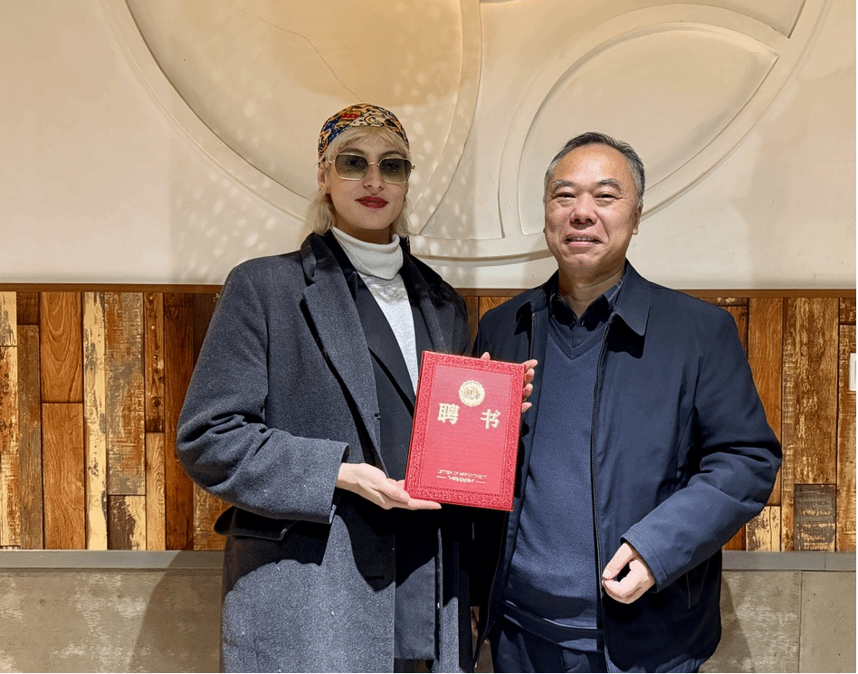 【图:音乐学院副院长王建成为Eva Schmechtig(上)、曲嘉男(下)颁发学院客座教授聘任证书】