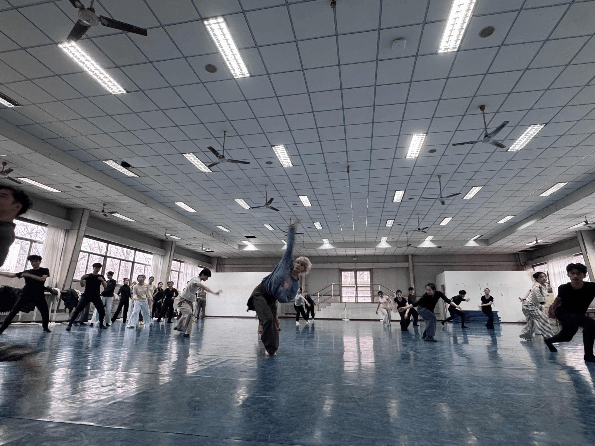 活动现场,音乐学院舞蹈系全体教师到场观摩学习,舞蹈系2023级、2024级共35名学生参与现场训练,舞蹈系其余学生同步观摩课程。课程环节中,德国现代舞舞者Eva Schmechtig围绕当代舞技术、即兴与身体等内容展开系统指导;随后旅欧舞蹈家曲嘉男聚焦移动线性空间训练,将现代舞最前沿的技术理念进行深入剖析和解读。