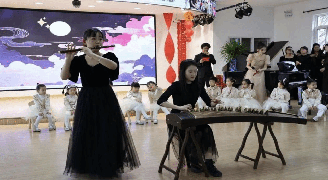 《山亭夏日》用歌声勾勒出绿树浓荫、蝉鸣阵阵的夏日画卷;《洋娃娃和小熊跳舞》充满童趣,孩子们跟着节奏蹦跳摇摆,表演赢得阵阵掌声;音硕2401夏之雨、高涵的四手联弹《Always with me》,琴音流转间满是温柔与治愈,温馨动人。