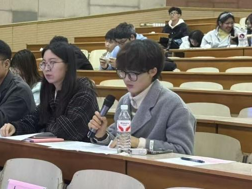 新生辩论赛决赛于11月2日下午在2教101进行,现场气氛更为紧张热烈。晋级队伍在深度与广度上进一步拓展,就“异地恋是试金石or绊脚石”“爱情是一见钟情or蓄谋已久”两个辩题进行了更深层次的较量,音理2501班代表队表现尤为抢眼。他们不仅对辩题核心概念把握精准,更能将音乐理论与艺术感悟巧妙融入论证,以独特的学科视角拆解对手逻辑,其新颖的立论角度与沉稳的临场风度赢得了满堂喝彩,充分体现了音乐学院学生跨学科思维的独特优势。