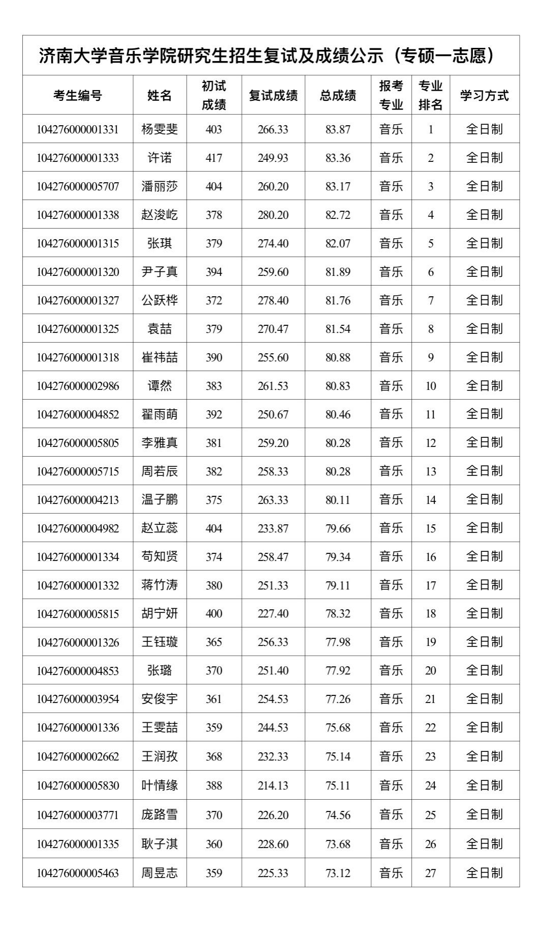 济南大学音乐学院研究生招生复试及成绩公示(2026)